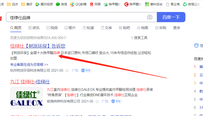 杭州樹派環(huán)保科技有限公司利用我司商標(biāo)"佳綠仕"進(jìn)行百度搜索關(guān)鍵詞宣傳,嚴(yán)重影響我司合法權(quán)益。